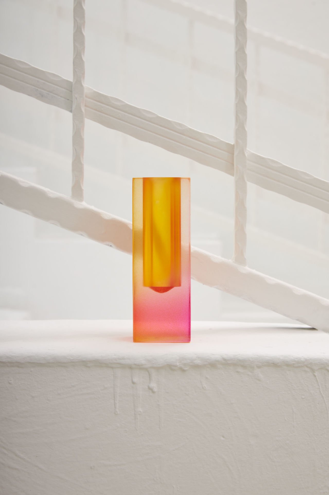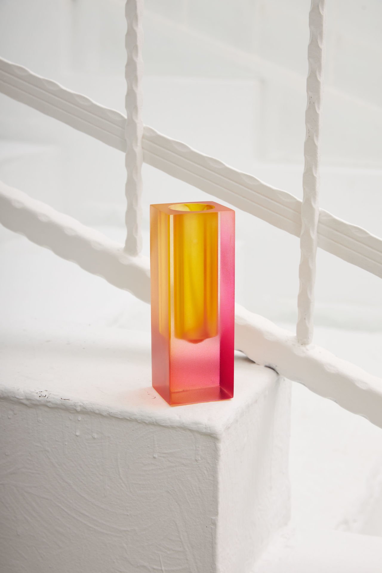 El boyaması pleksi Ember mumluk, altın sarısı ve pembe tonlarının sıcaklığını evinize taşıyor. Zarif tasarımıyla huzur dolu bir atmosfer yaratın!