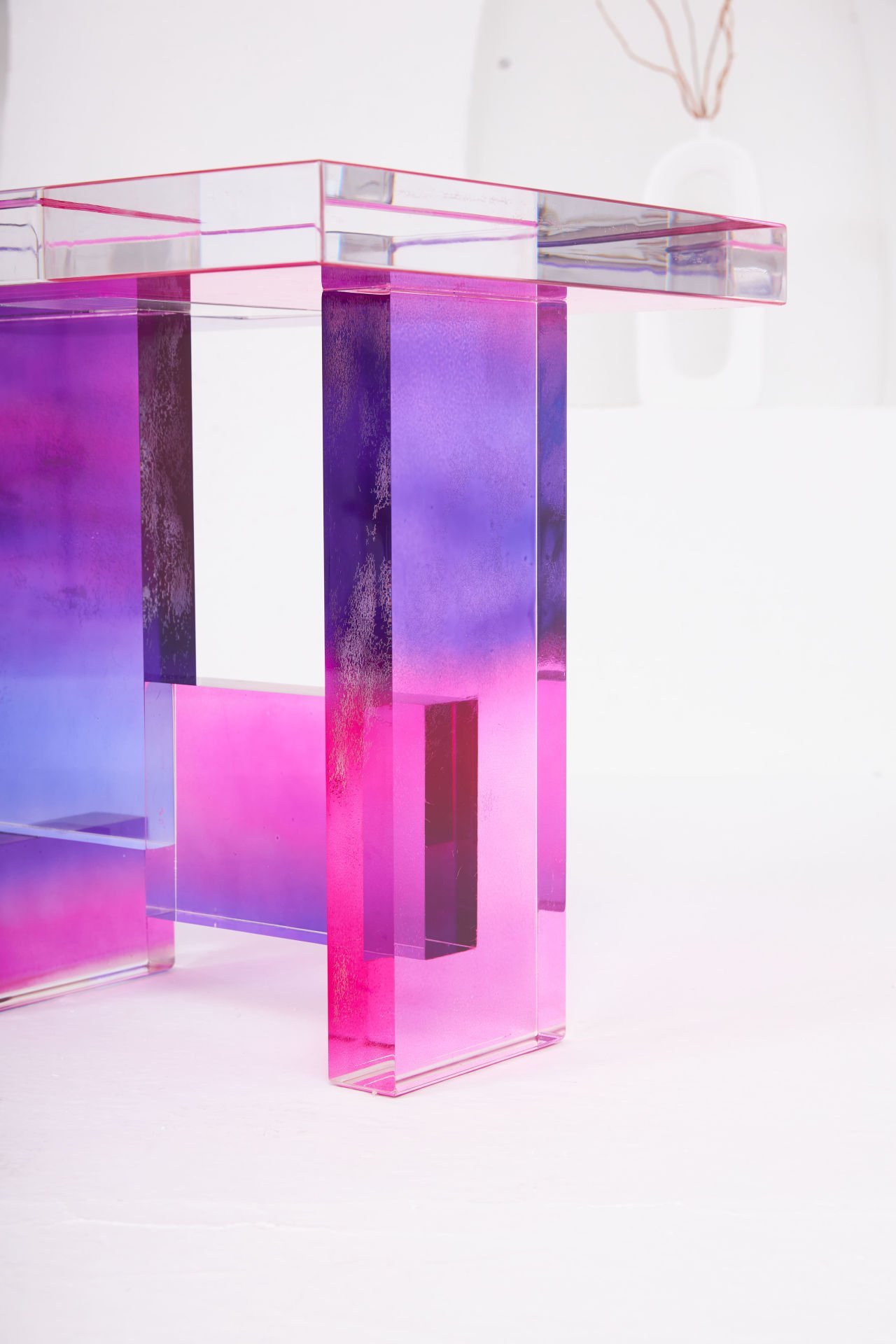 Nebula, galaksilerin büyüleyici güzelliğinden esinlenerek tasarlanmış, modern sanatla fonksiyonelliği birleştiren eşsiz bir sehpadır. Pembe ve mor tonlarının el boyaması geçişleri, adeta bir nebulanın kozmik hareketlerini yansıtır. Şeffaf pleksi yüzeyi, ışığı yakalayarak her açıdan farklı bir ışıltı sunar ve bulunduğu ortamda büyüleyici bir atmosfer yaratır.