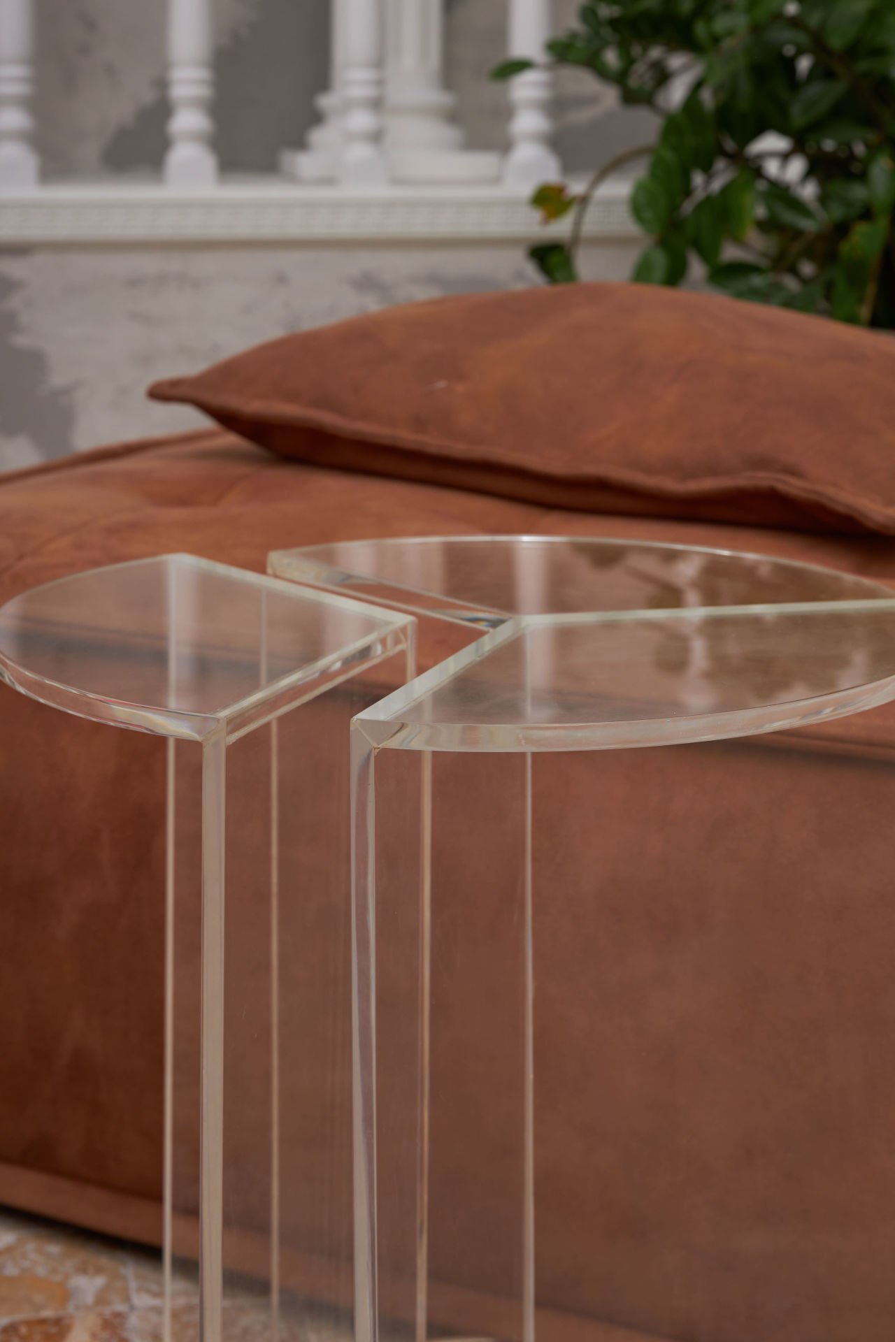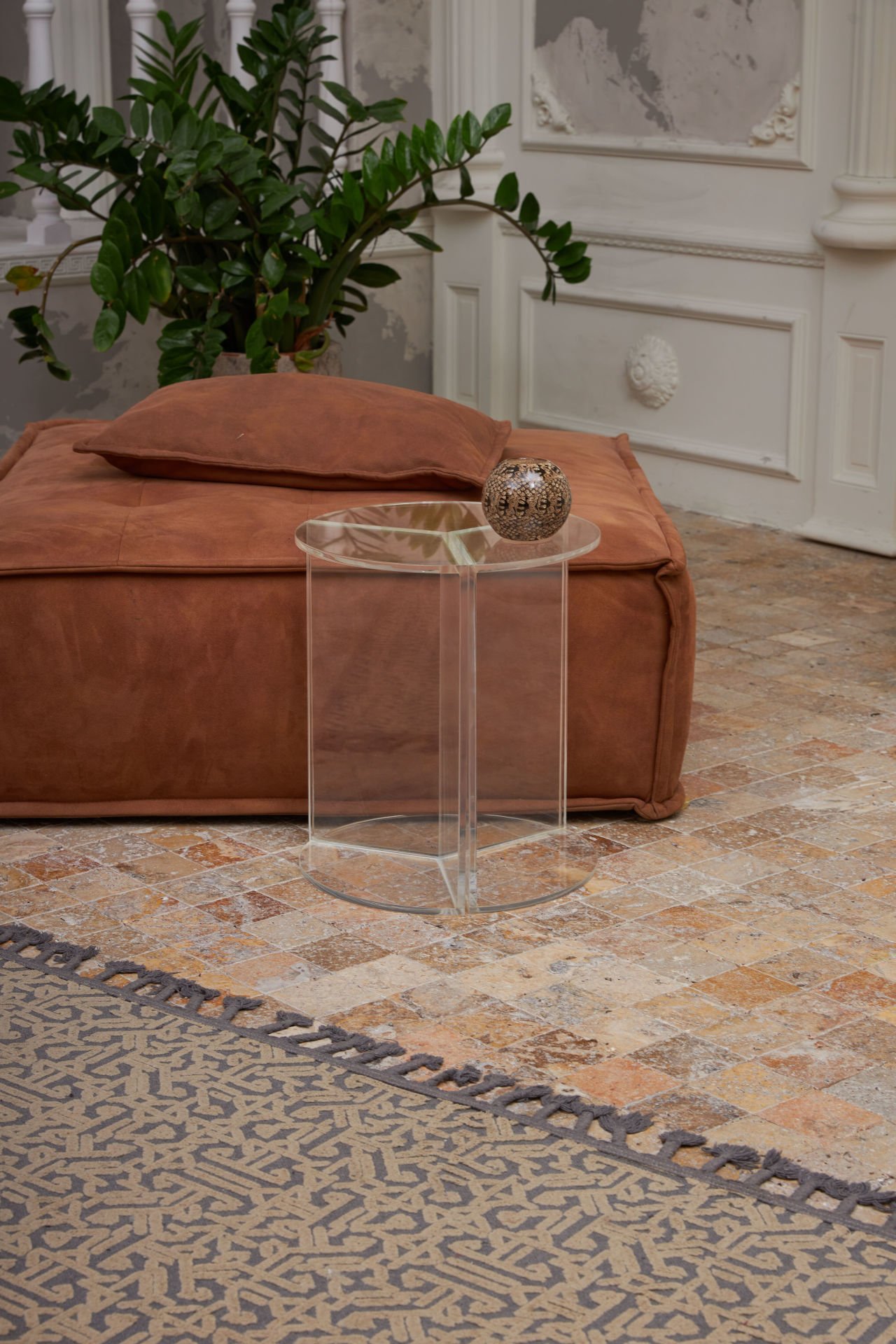 Şeffaf pleksi malzemesi, bulunduğu mekânda ışığı ve renkleri büyüleyici bir şekilde yansıtarak çevresiyle etkileşim kurar. Hem bir yan sehpa olarak hem de dekoratif bir obje olarak işlev gören Nexus, sade ve modern yaşam alanlarında kusursuz bir denge yaratır.