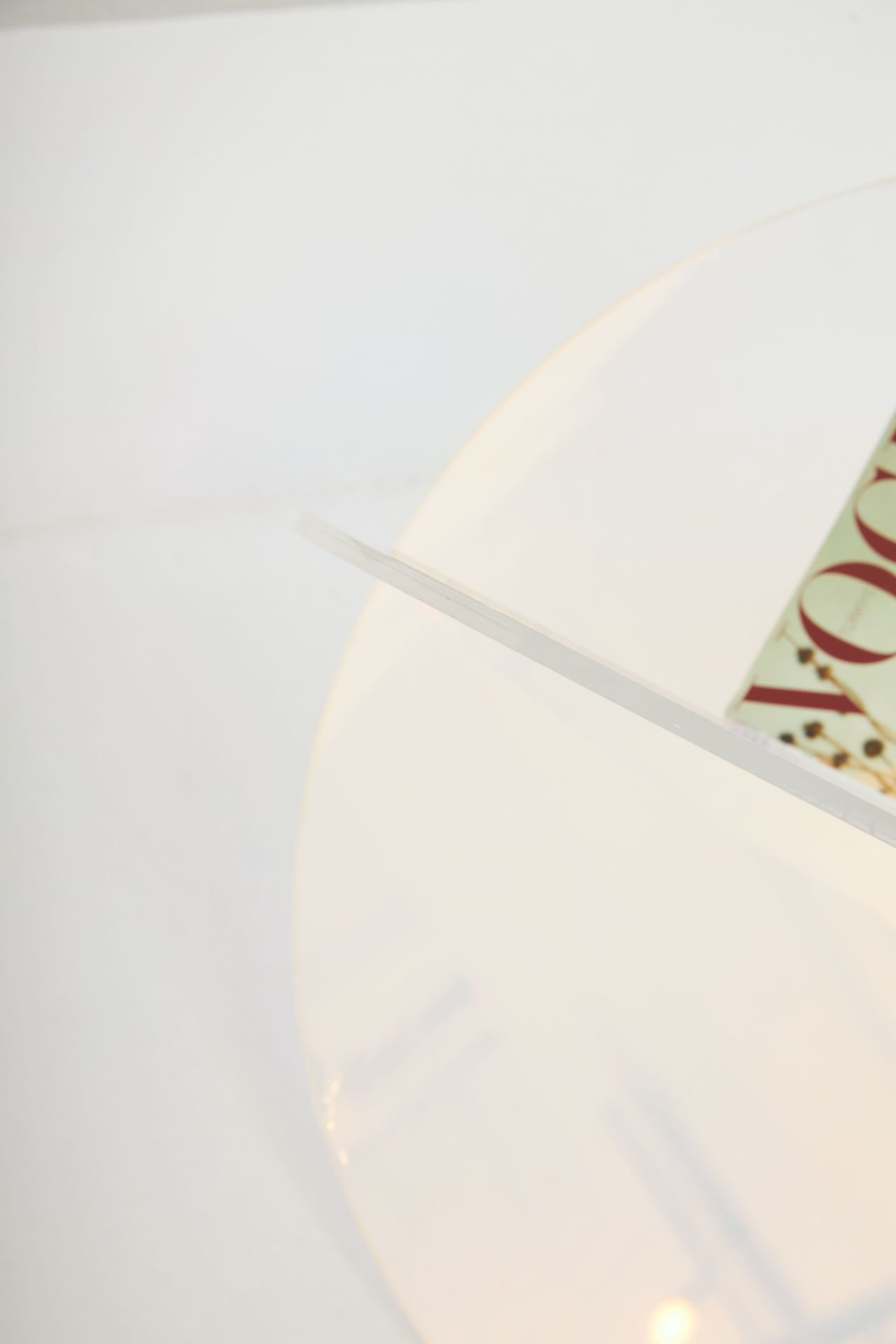 Şeffaf pleksi malzemenin zarafeti, mekânda adeta havada süzülüyormuş hissi yaratır. Dairesel katmanları ve üzerine kaplanan malzeme, ışığı farklı açılardan yansıtarak her an değişen bir renk ve ışık oyununa dönüşür.