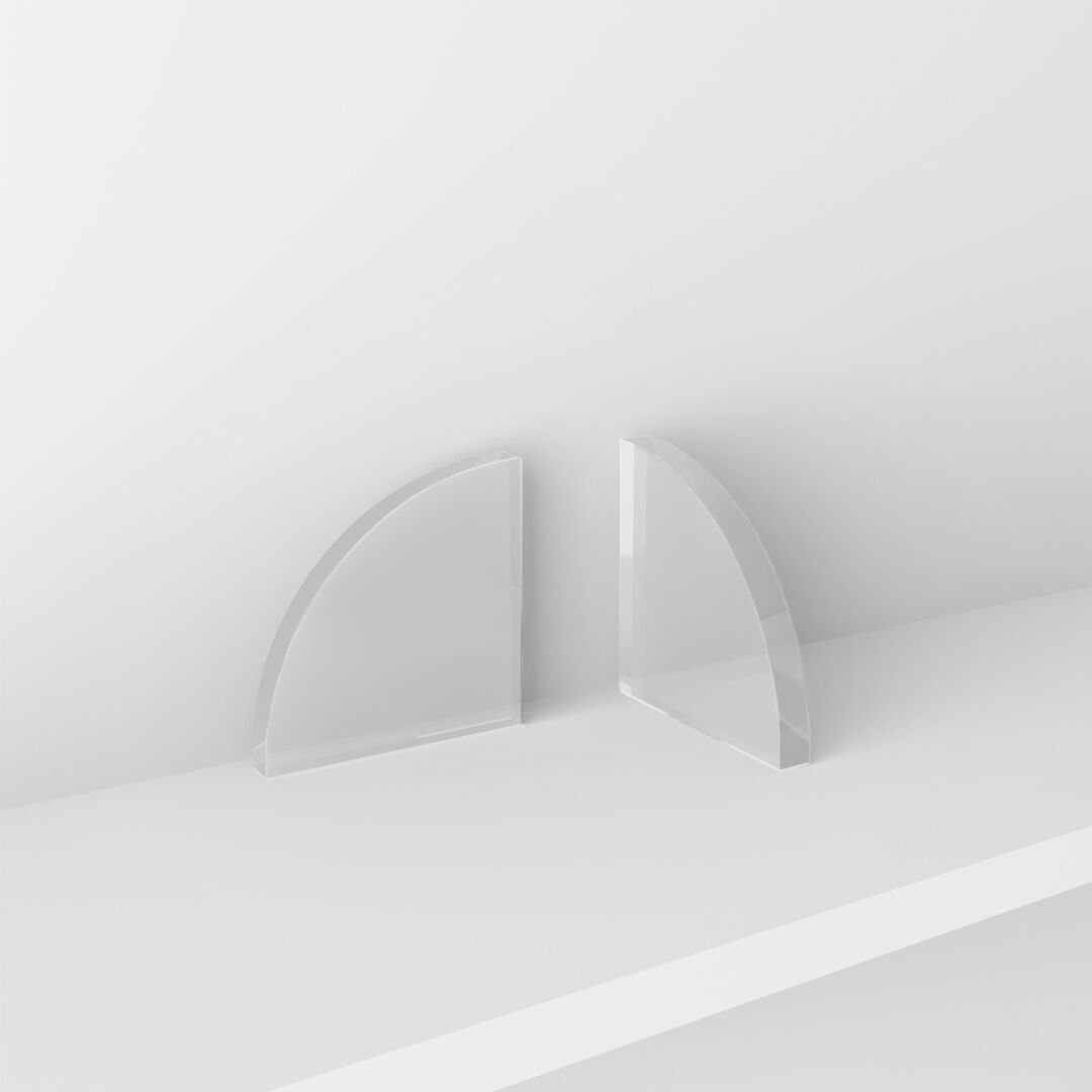 Fonksiyonel formu sayesinde kitapları sabitlerken, mekânda sade ve dengeli bir tamamlayıcı olarak konumlanır.